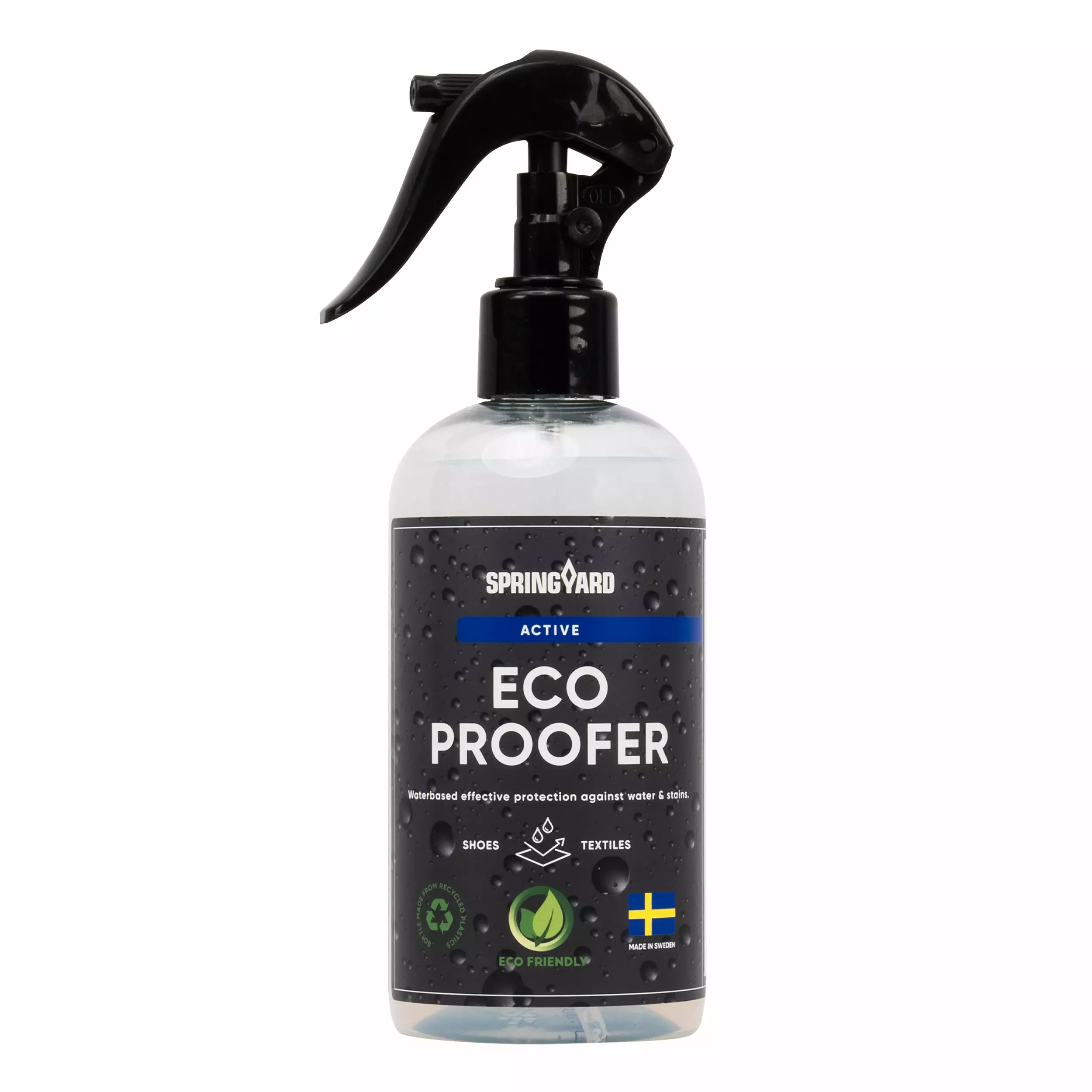 Suojaa jalkineesi säältä ja tahroilta Springyard Eco Proofer -suojasuihkeella. Tämä vesipohjainen suihke tarjoaa tehokkaan ja kestävän suojan ilman, että materiaalin hengittävyys kärsii. Sopii useimmille materiaaleille, kuten nahalle, tekstiilille, mokalle/nupukille ja synteettisille materiaaleille. Tuote on PFAS-vapaa ja valmistettu 96 % luonnollisista ainesosista.