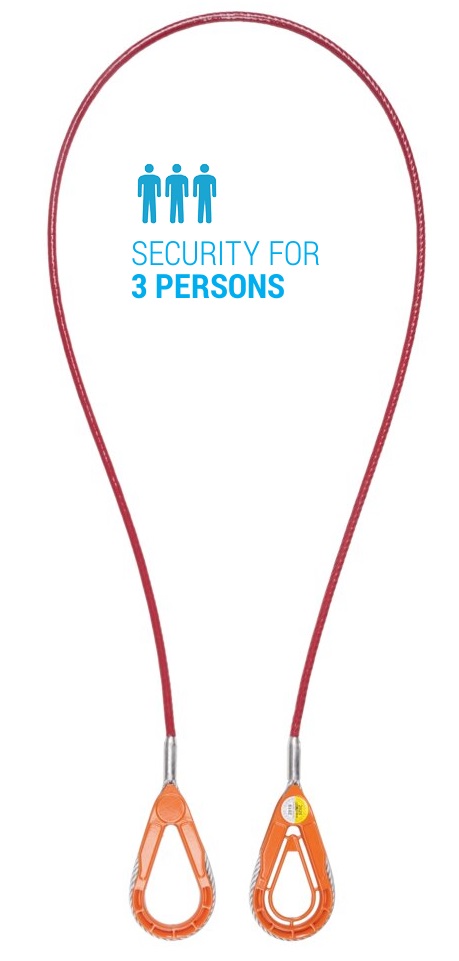 Yhteensopiva esimerkiksi Lifeliner ankkuripiste hihnan kanssa. Jos halutaan nostaa Lifeliner lattiatasosta ylöskulumisen estämiseksi, niin tämän AZ411 ankkurivaijerilla sen voi tehdä, koska se on tarkoitettu suojaamaan kolmelta henkilöltä samanaikaisesti.