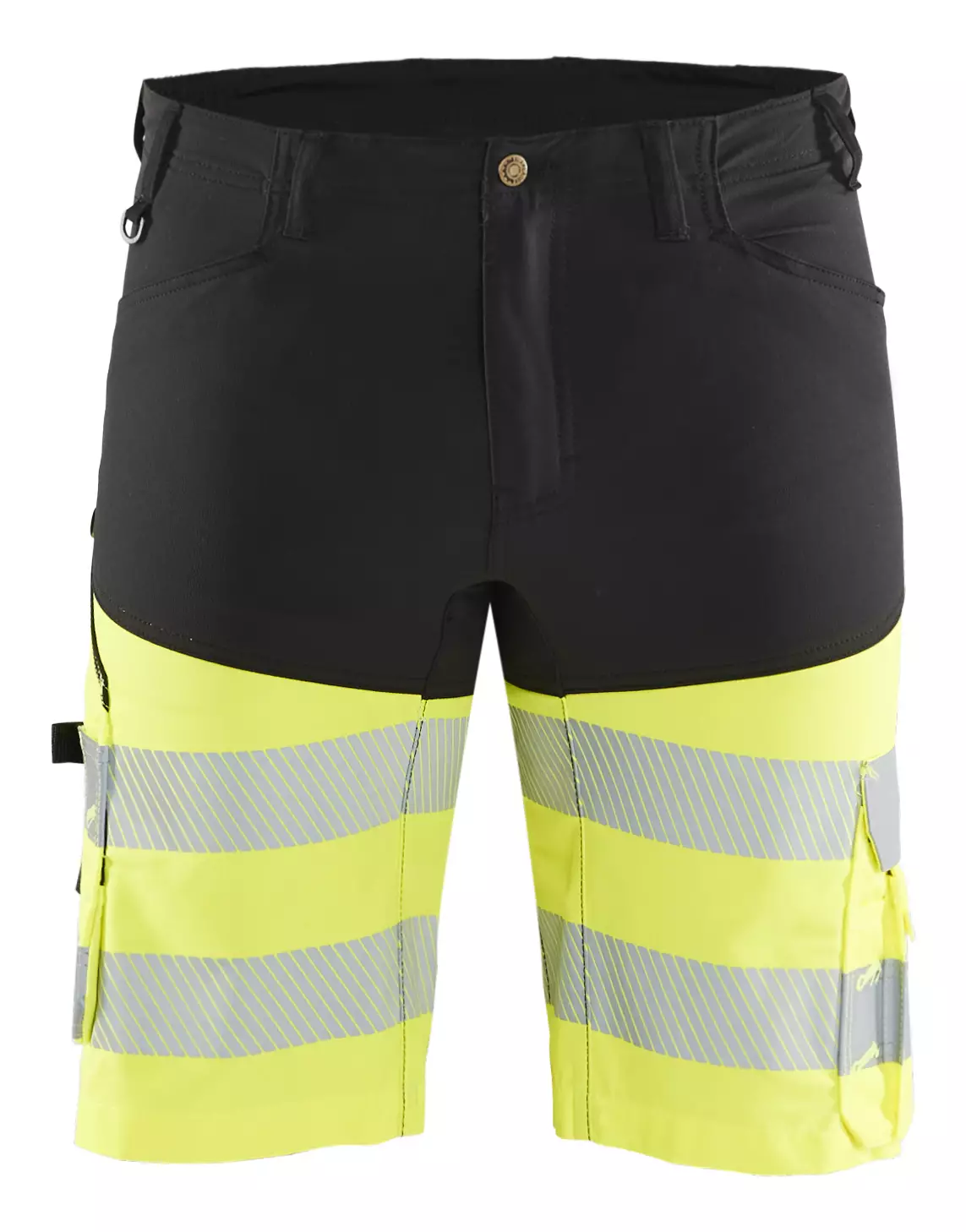 Erittäin mukavat ja joustavat highvis shortsit, joissa etuosa stretch kangasta sekä stretch kangasta myös takapuolella. Vyötärö on myös joustava, mikä entisestään lisää mukavuutta. Paljon yksityiskohtia kuten reisitasku, CORDURA®vahvistetut takataskut, id-henkilökorttitasku sekä puhelintasku. Sertifioitu EN ISO 20471, luokka 1. Yhdistelmä sertifiointi V.