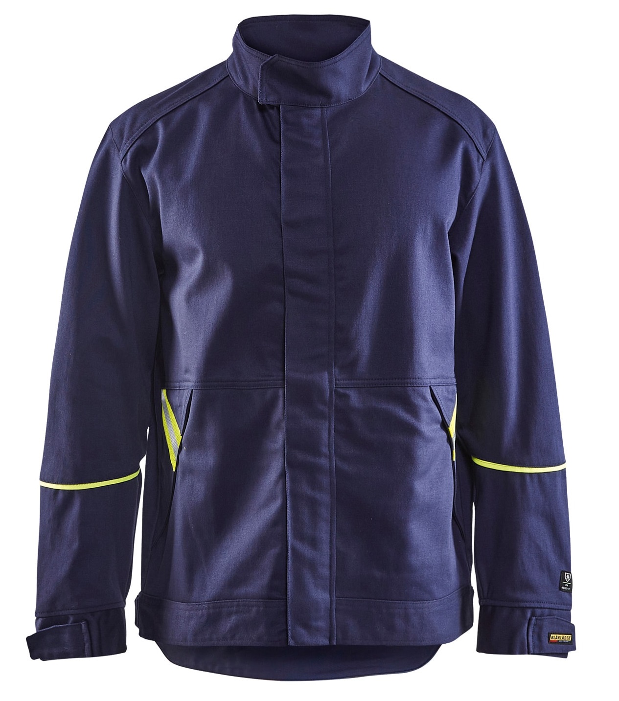 Hitsaajan takki heijastimilla, jotka lisäävät näkyvyyttä. Hyvä istuvuus. Muotoillut hihat sekä hihansuut tarrakiinnityksellä. Pesu 60°C.