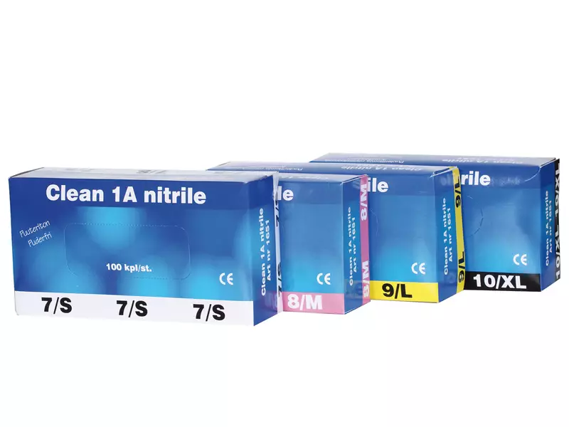 Puuteriton nitriilikumikäsine. Joustavaa ja lujaa laatua. Elintarvikkeiden käsittelyyn sopiva