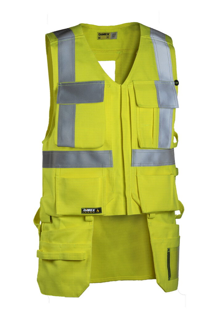 Dimex 2306T Multi Riipputaskuliivi yhdistää palosuojauksen, näkyvyyden ja käytännöllisyyden yhteen tuotteeseen. Tämä liivi tarjoaa käyttäjälleen toiminnallisen ratkaisun työkalujen ja tarvikkeiden säilyttämiseen, pitäen ne helposti saatavilla työn aikana. Erityisesti suunniteltu levennyspala ja olkakappaleiden pidennysvara parantavat liivin käytettävyyttä. Lisäksi selässä on aukko turvavaljaille sekä ripustuslenkki.