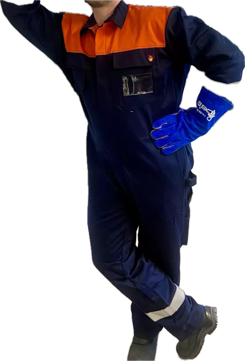 Hitsarin umpihaalari – palosuojattu, heijastimilla (EN ISO 11612 & EN ISO 11611) Ammattilaatuinen palosuojattu umpihaalari hitsaus- ja hiontatöihin. Suojaa kipinöiltä ja kuumilta roiskeilta, ja 50 mm heijastinnauhat hihoissa ja lahkeissa parantavat näkyvyyttä hämärässä. Pikaominaisuudet Palosuojattu kangas – suunniteltu hitsaus- ja lämpöriskitöihin Heijastimet 50 mm hihoissa ja lahkeissa Mukavat lepotaskut ja sivuaukot (pääsy alusvaatteisiin) Läpälliset rinta- ja takataskut (suojaavat kipinöiltä) Sisäpuoliset polvisuojustaskut – yhteensopivat useimpien polvisuojien kanssa Työkalulenkki ja mittatasku molemmin puolin – toimiva työjärjestys sekä oikea- että vasenkätiselle Standardit ja suojaustaso EN ISO 11612: A1 B1 C1 – suoja rajoitetulta liekinlevinnältä, konvektiolämmöltä ja säteilylämmöltä EN ISO 11611: Class 1 A1 – hitsaustyöt, kevyt kipinöinti ja vähäisemmät roiskeet Huom. Valitse tarvittaessa lisäsuojat (käsineet, suojalasit/visiiri, jalkineet, hengityssuojaimet) työn riskitason mukaan. Class 1 soveltuu vähemmän vaativiin hitsausprosesseihin. Värit ja koot Värit: Navy–Oranssi, Navy–Punainen Miesten koot: 46–64 Taskut ja yksityiskohdat 2 × läpällistä rintataskua 2 × lepotaskua Sivuaukot vyötäröllä 2 × läpällistä takataskua Mittatasku molemmin puolin Työkalulenkki Sisäpuoliset polvisuojustaskut Käyttökohteet Hitsaus- ja polttoleikkaus Hionta, kuumatyöt, kunnossapito Teollisuuden asennus- ja rakennustyöt Hoito-ohje (tiivistelmä) Pese ja huolla valmistajan hoito-ohjeiden mukaan Vältä huuhteluaineita ja valkaisuaineita, jotta palonsuojaus säilyy Vaihda vaate, jos se on vaurioitunut tai voimakkaasti likaantunut palovaarallisilla aineilla