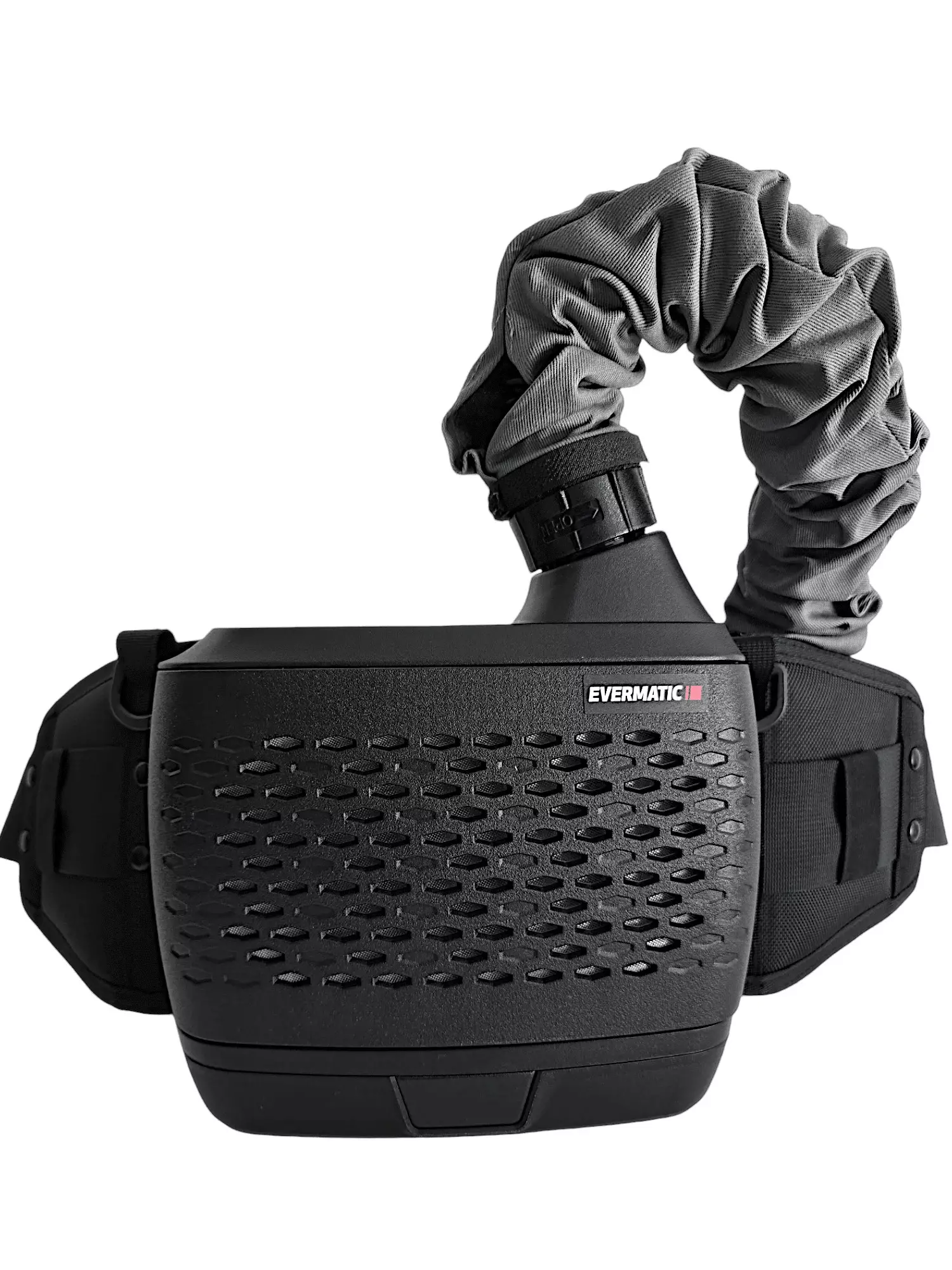Tehoakku Nahkainen tukivyö Evermatic AirTec PAPR on ihanteellinen ratkaisu ammattilaisille, jotka tarvitsevat luotettavaa ja tehokasta hengityssuojausta vaativissa teollisissa ympäristöissä.