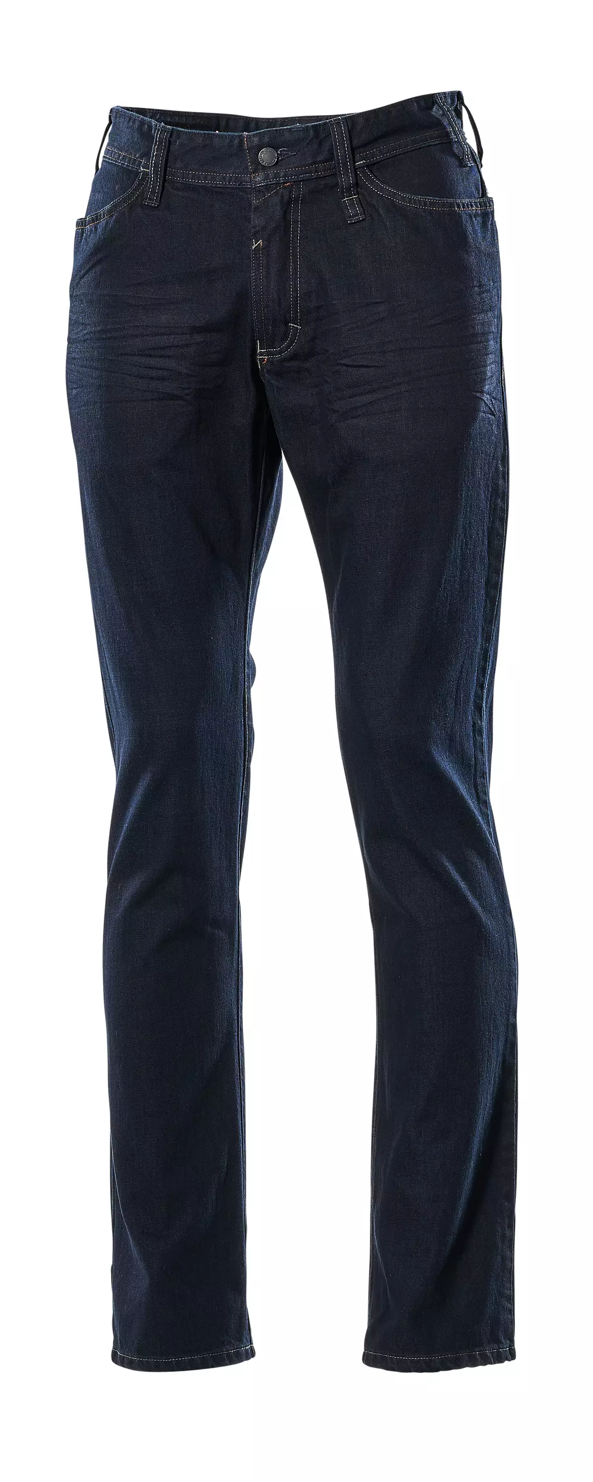 Denim work jeans intended as general-purpose workwear where a cotton-based, industrial-laundry-compatible garment with a supportive waistband structure is required. The main functional benefit is mobility support provided by the low waist and shaped waistband during varied working postures. As purchasing support: suitability should primarily be assessed based on laundering process and fit requirements rather than protective classifications.