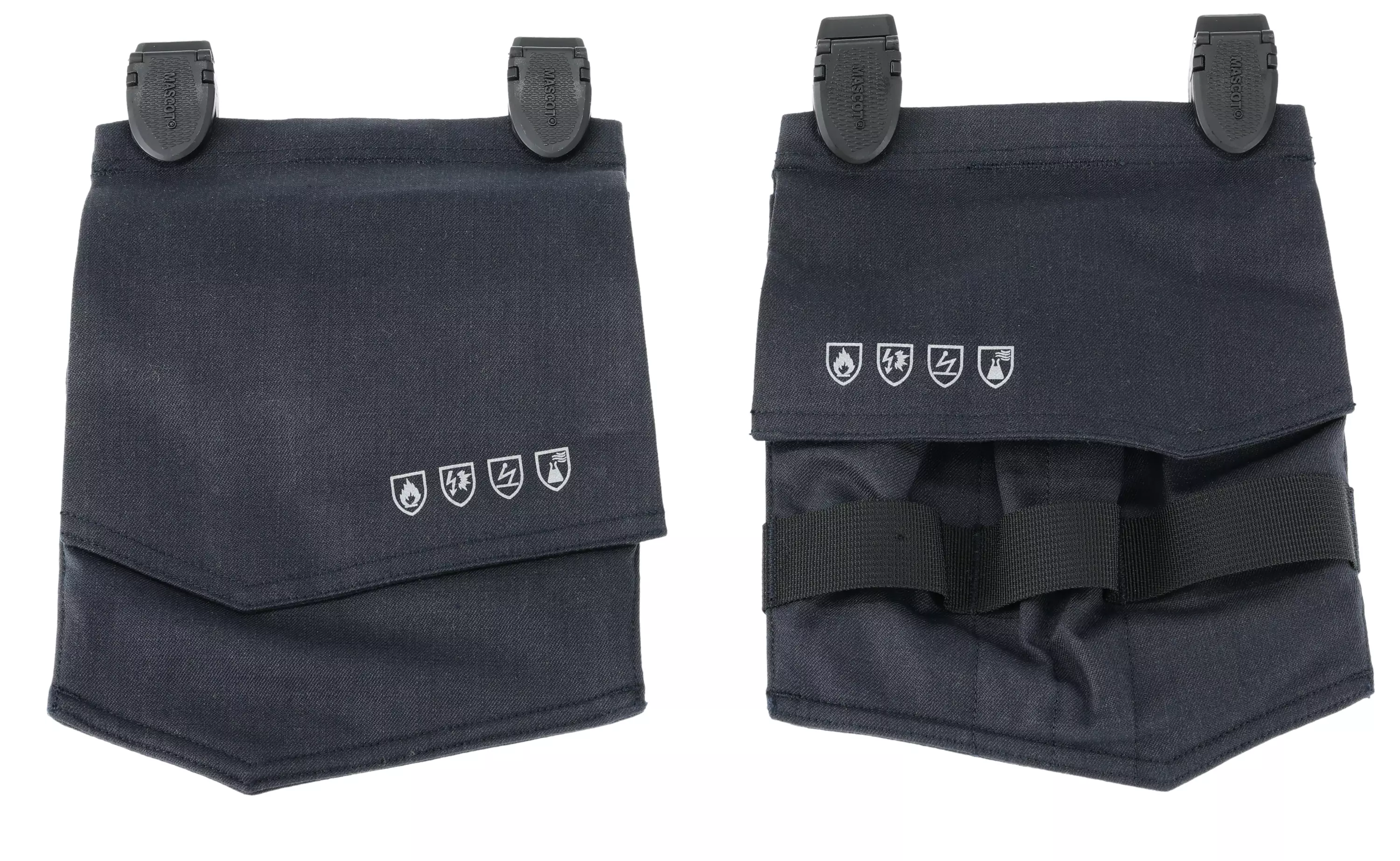 Mascot Multinorm Hanging Pockets Chemical 24010 – Versatile and Protective Workwear Accessory The Mascot Multinorm Hanging Pockets Chemical 24010 provide additional storage and protection for demanding work environments. These flame-retardant and chemical-resistant pockets are made from Ripstop fabric, ensuring durability and tear resistance. They are compatible with all MASCOT® ACCELERATE MULTISAFE trousers, coveralls, and bib & brace overalls. Key Features: - Flame-retardant, antistatic, and acid-resistant – Meets strict safety standards. - Durable Ripstop material – Tear-resistant design for long-lasting use. - Click Pocket System – Easily attachable and removable as needed. - Spacious and practical storage – Multiple pockets for tools and accessories. - Suitable for industrial washing – C2 care category ensures durability in demanding washing conditions. - Easy to remove and store – Convenient hanging loops for storage when not in use. Pocket Configuration & Dimensions: - Set includes two hanging pockets - Dimensions: 20 x 25 cm - First pocket: Two spacious compartments and one zippered pocket - Second pocket: One large compartment, two screwdriver pockets, two pockets for pliers or other tools, and three tool loops Technical Specifications: - Material: 44% modacrylic, 30% cotton, 20% polyamide, 5% aramid, 1% carbon fiber - Weight: 260 g/m² - Certifications: - EN ISO 11612 – Protection against heat and flames - EN 13034 – Limited protection against liquid chemicals (Type 6) - EN 61482-1-2 APC 1 – Protection against arc flash (Box Test method) - EN IEC 61482-1-1 – Protection against arc flash (Open Arc method) - EN ISO 20471 Class 1 – High-visibility protective clothing - OEKO-TEX® STANDARD 100 – Tested for harmful substances A perfect choice for professionals who need durable, flexible, and multifunctional storage options for their workwear.