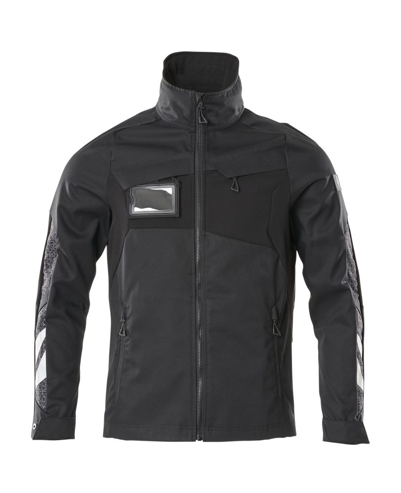Stretchiä osassa tuotetta. Yhdistelmä kevyt kankaista laatua 442 sekä ULTIMATE STRETCH laatua 511. Vetoketjukiinnitys ja sisäpuolinen tuulilista. Vetoketjullinen rintatasku. Irrotettava ID-korttitasku. Vetoketjulliset etutaskut. Povitaskut. Painonappisäätö hihansuissa ja helmassa. Logolla ja heijastimilla.