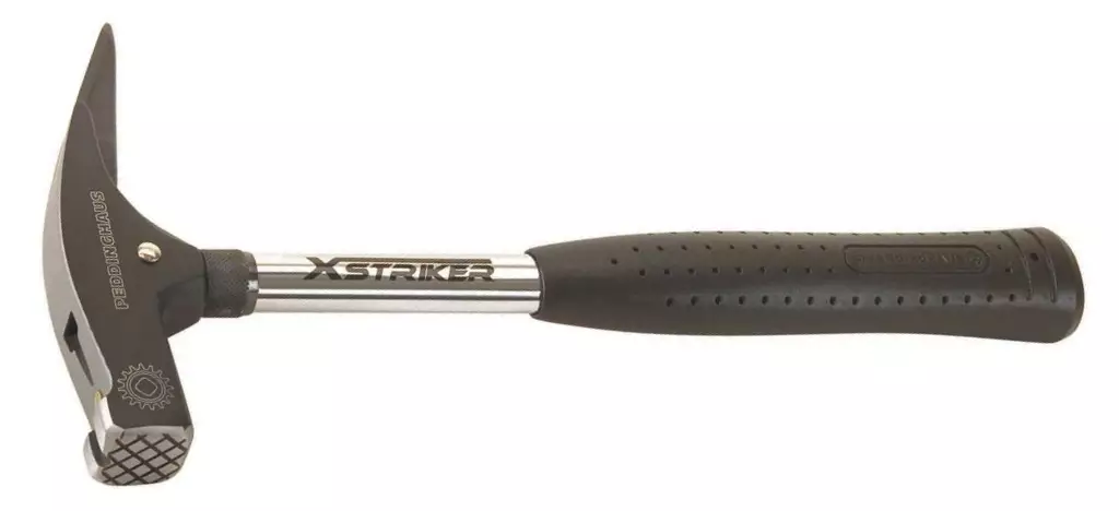 Erityisesti vaativille telineasentajille. Ammattilaiskäyttöön suunniteltu kattovasara, Piikkipäinen vasara monipuoliseen käyttöön vaikeapääsyisissä paikoissa.