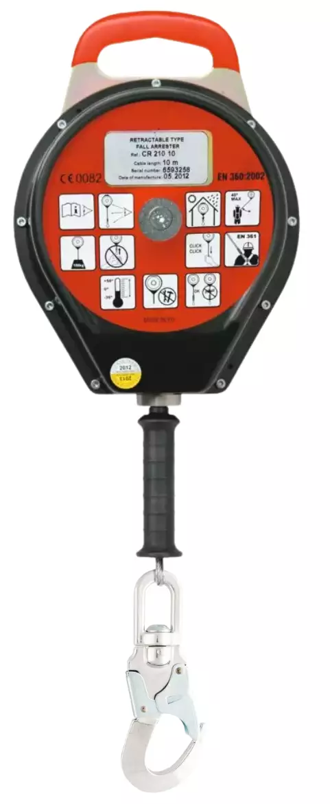 The Probelt CR210 (15 m) is a compact and durable fall protection device designed for vertical work requiring extended movement and safety. The galvanized steel wire automatically retracts, while the internal braking mechanism controls the arrest force without an additional shock absorber. Suitable for one user, maximum load 140 kg including equipment.