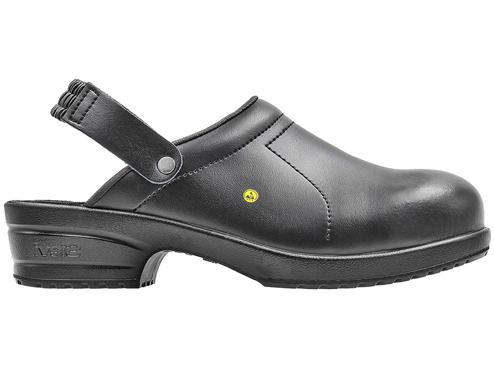 Hollannikastyyppinen, klassinen ja monikäyttöinen ESD-malli. Päällinen kestävää mustaa PU-nahkaa. Käännettävässä takaremmissä venyke parantaa istuvuutta. Pitävä polyuretaanipohja kestää öljyä ja useita kemikaaleja.