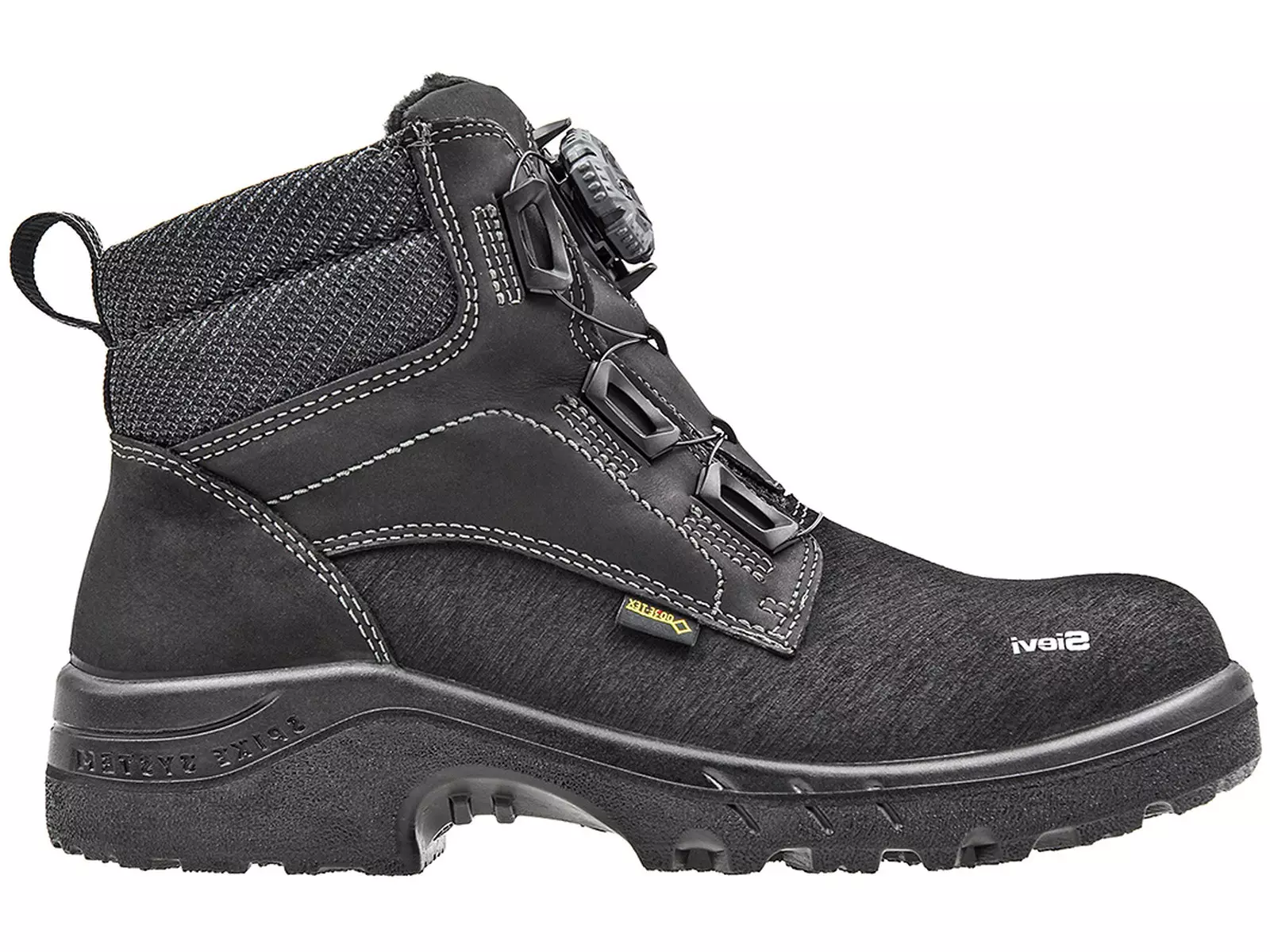 Sievi Spike GT Roller safety shoes with spikes provide top-level safety and comfort for winter conditions. These shoes feature an integrated, patented Sievi Spike® mechanism in the sole structure, allowing you to easily flip the spikes in and out without removing the shoes. The spikes offer superior grip on snow-covered and icy surfaces, making them an outstanding choice for working in slippery conditions. The shoes are equipped with a waterproof and breathable GORE-TEX membrane, keeping your feet dry while ensuring breathability. The BOA® Fit System allows for quick and easy tightening, making the shoes simple to put on and adjust. Features: - Sizes: 38–47 - Product codes: 46-52863-342-08M (size 38), 46-52863-343-08M (sizes 39–47) - Safety classification: EN ISO 20345:2011 SB A FO P SRC - Toe protection: Steel - Puncture resistance: Steel - Sole material: Single-layer PU - Upper material: PU-coated leather and nubuck - BOA® lace length: 85 cm The Sievi Spike GT Roller is the perfect choice when you need safe, durable, and comfortable footwear for challenging winter environments. Order yours today!