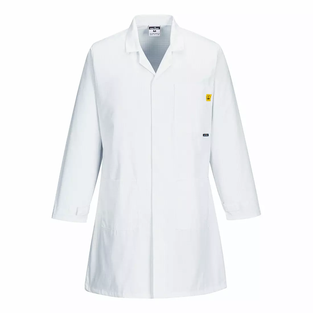 Luonnostaan antistaattinen ESD-takki ympäristöihin, joissa vaaditaan sähköstaattista suojausta. Suunniteltu turvalliseksi ja mukavaksi: edessä suojalistalla peitetty nepparikiinnitys, käytännölliset taskut ja säädettävät hihat.