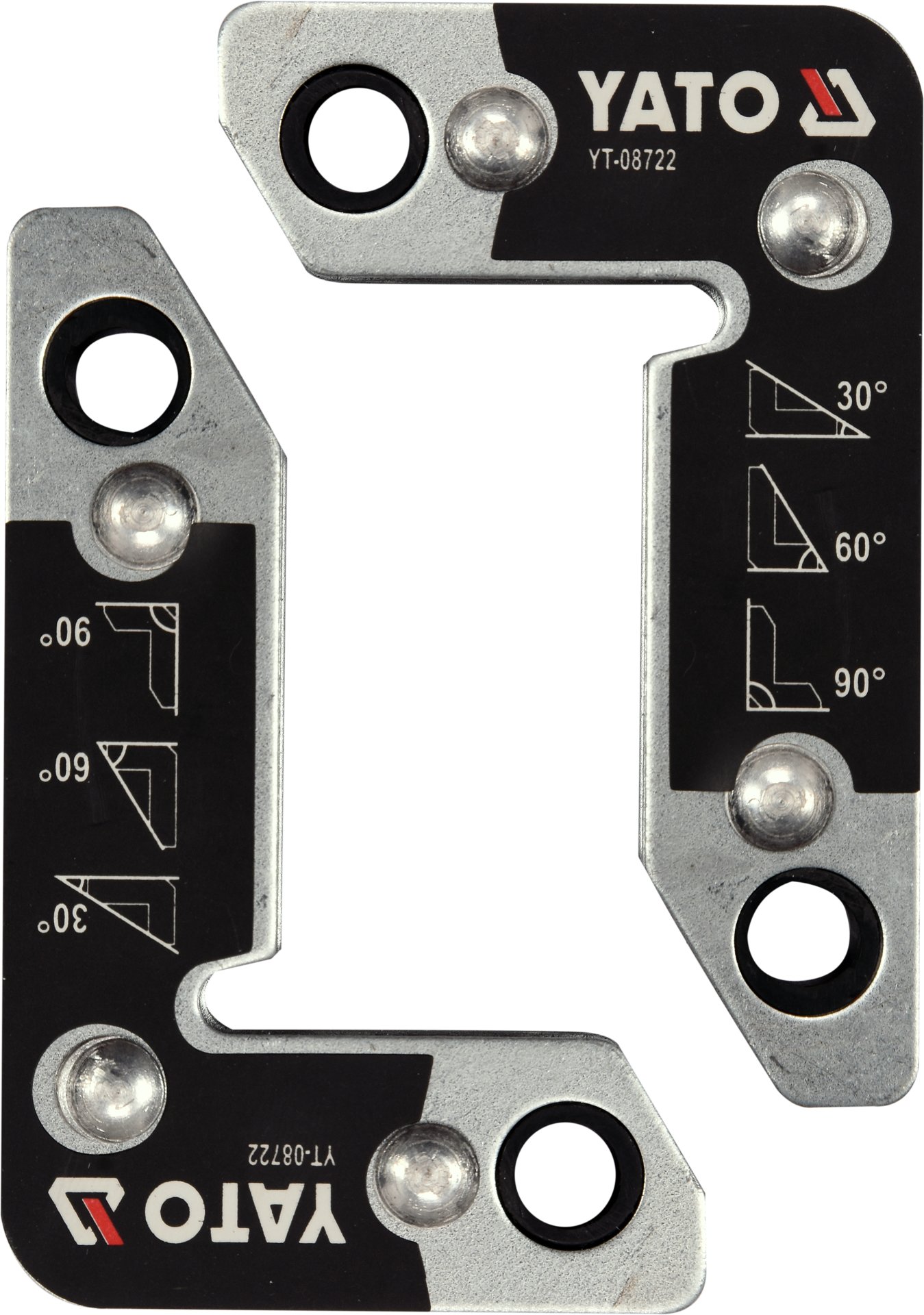 MAGNEETTISET HITSAUSPIDIKKEET 2 KPL 25KG 2 magneettisen kulmapidikkeen sarja YT-08722, jota käytetään hitsauksessa ja kokoonpanossa eri kulmissa. Vahvojen magneettien ansiosta pidikkeet takaavat hitsattavien elementtien turvallisen kiinnityksen. Pitovoima: 25 kg Käyttökulmat: 30°, 60° ja 90°