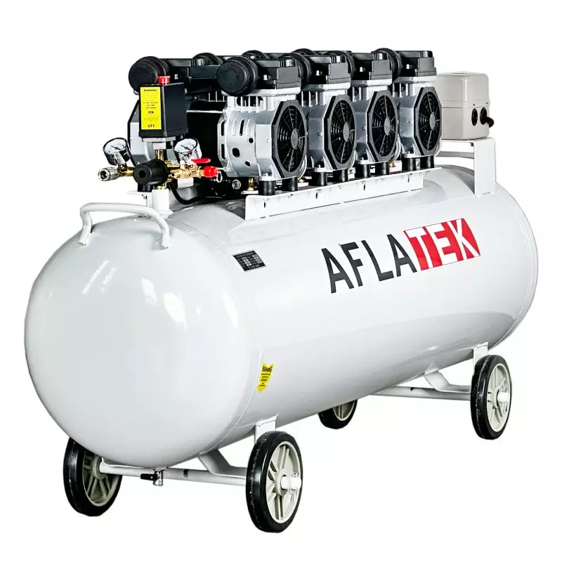 Aflatek SilentPro200-4 on SilentPro-sarjan lippulaivamalli, joka on suunniteltu kohteisiin, joissa tarvitaan valtavaa ilman tuottoa ja suurta varastointikapasiteettia ilman perinteisten kompressorien korviahuumaavaa melua. 200 litran säiliö ja neljä tehokasta moottoria tekevät tästä täydellisen ratkaisun suuriin työpajoihin, teollisuuteen ja vaativiin lääketieteellisiin ympäristöihin.