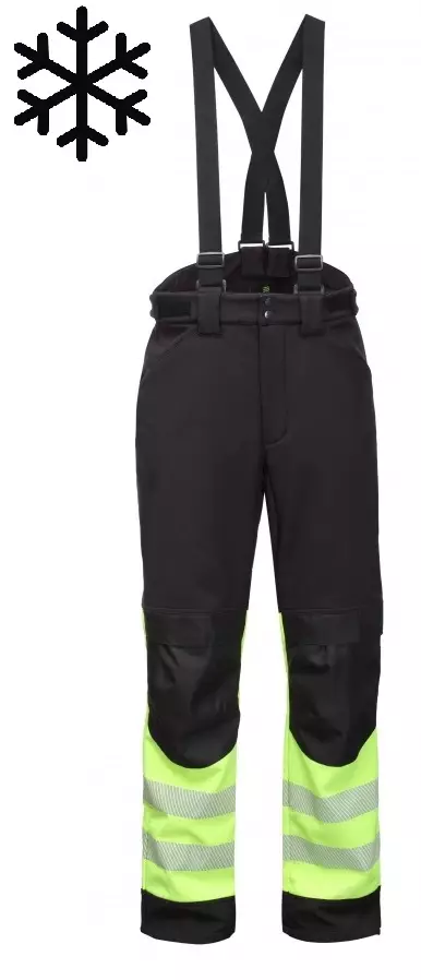 Kevyet softshell-talvihousut huomioluokassa 1. Joustava ja kestävä rakenne. Veden- ja tuulenpitävä materiaali, erinomainen lämmöneristys ja säädettävä ilmanvaihto. Ominaisuudet Huomioluokka 1 Softshellkangas, veden- ja tuulenpitävä Joustava ja kulutusta kestävä materiaali Sivuvetoketjut tuuletukseen 100% polyesterivanu (Sintepon) Korkea vyötärö, säädettävät 4 pisteen henkselit 2 vetoketjullista etutaskua