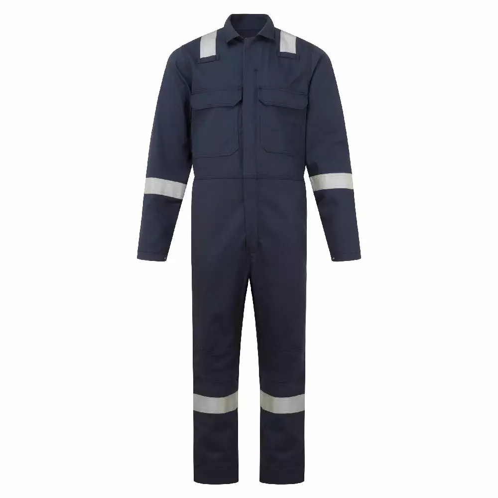 Käyttöturvallisuutta lisäävät strategisesti sijoitetut tulenkestävät heijastinnauhat olkapäissä, hihoissa ja lahkeissa, jotka parantavat näkyvyyttä hämärissä olosuhteissa.
