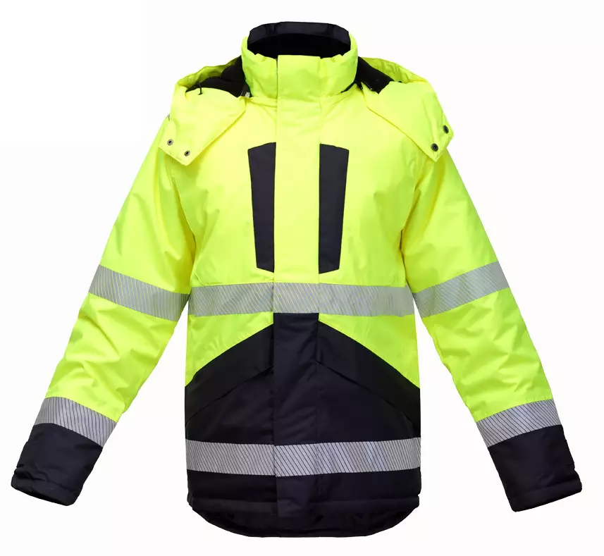 Huomiotalvitakki työmaille, infraan, huoltoon ja logistiikkaan. PU-kalvo ja Oxford-pintakangas suojaavat tuulelta ja vedeltä.