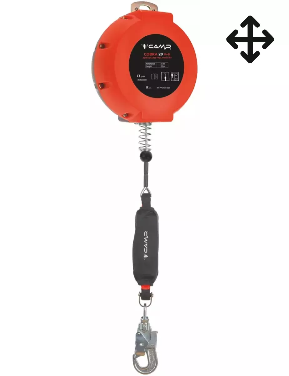 Camp Cobra 20m kelautuva turvatarrain sisältää 4,8 mm sinkityn teräsvaijerin, jonka murtolujuus on yli 12 kN. Kestävä ABS-kotelo suojaa mekanismia ja pidentää laitteen käyttöikää. Laitteessa on automaattisesti lukittuva kääntyvä liitin, sisäinen mekaaninen energianvaimennusjärjestelmä sekä ulkoinen tekstiilinen energianvaimennin. Paino on 9,8 kg :contentReference[oaicite:2]{index=2}.