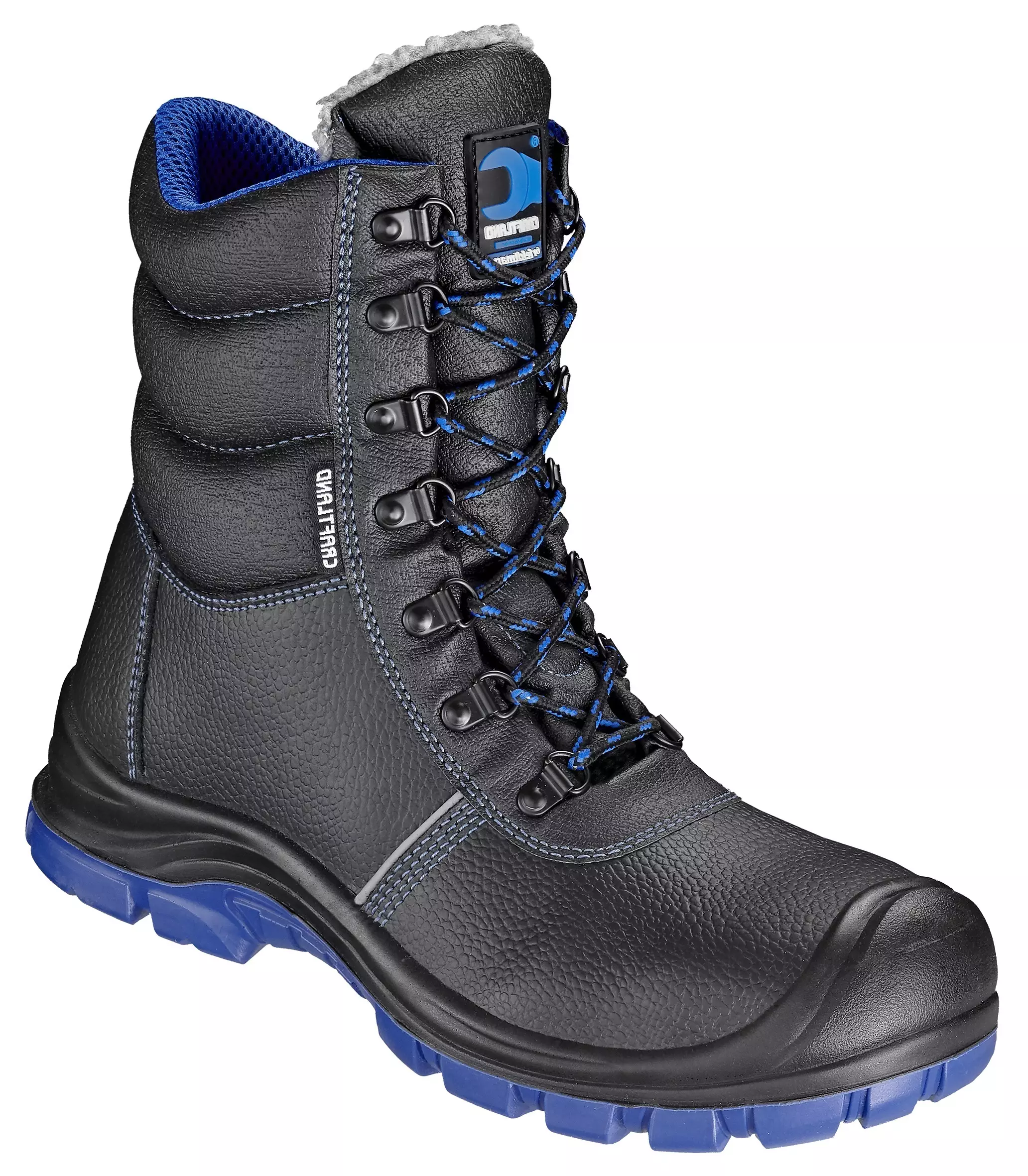 Tämä talviturvakenkä yhdistää vedenkestävyyden, mukavuuden ja turvallisuuden. Sen kohokuvioitu nahkapäällinen ja keinotekoinen turkispäällyste tarjoavat erinomaisen suojan kylmissä ja kosteissa olosuhteissa.