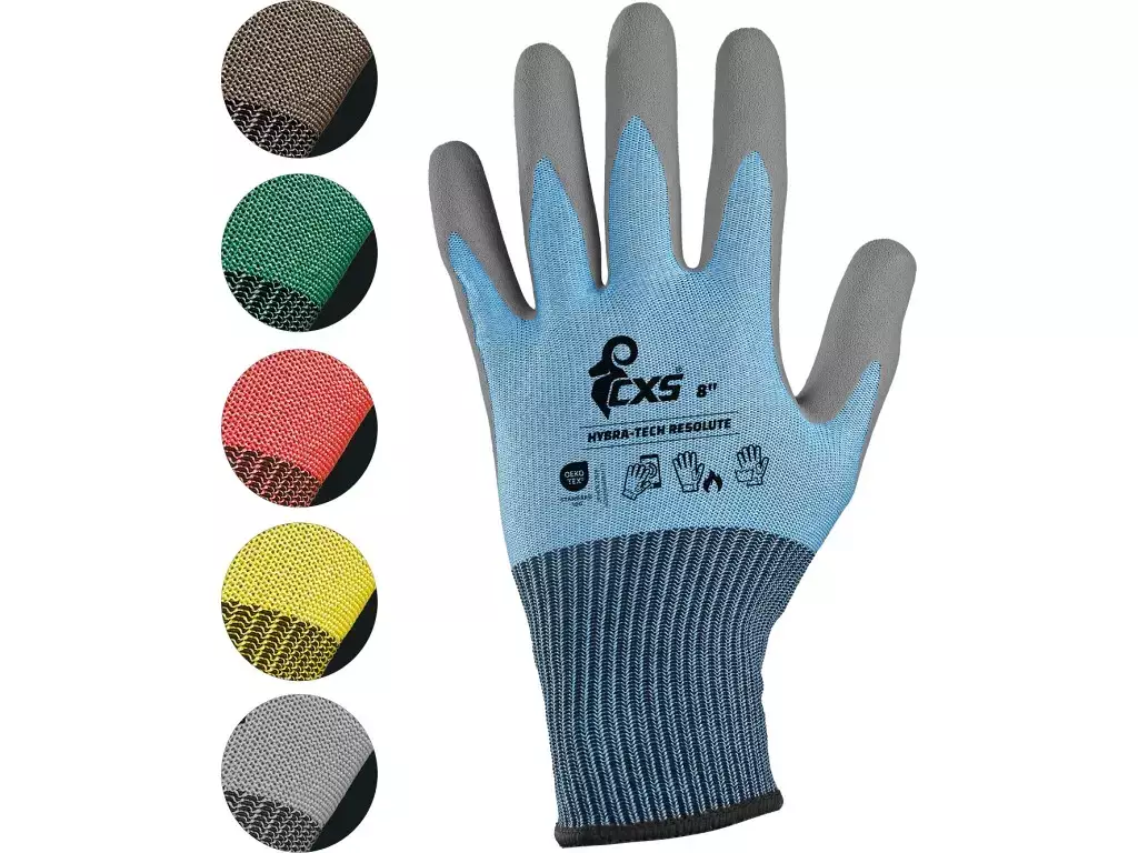 Monikäyttöiset CXS Hybra-Tech Resolute -käsineet tarjoavat erinomaisen pidon, joustavuuden ja lämmönsietokyvyn. Kämmen ja sormet on päällystetty Soft-Pro-lateksilla, jonka hiekkamainen pinta takaa pitävän otteen myös kosteissa olosuhteissa. Käsineet kestävät kontaktikuumuutta jopa 100 °C asti, ja ne ovat silikonittomat sekä pestävät, mikä pidentää käyttöikää ja vähentää jätettä.