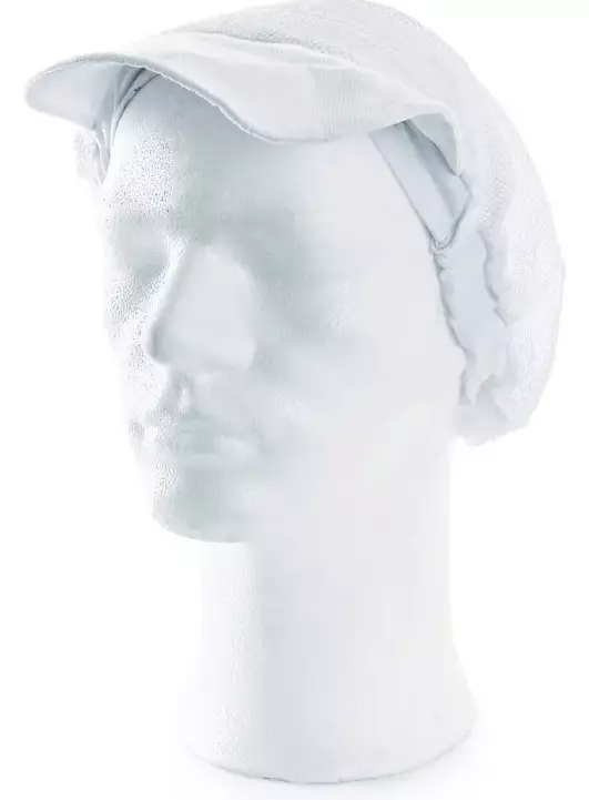 Tyylikäs ja käytännöllinen kokin hattu lipalla. Hatun materiaali on kestävää puuvillaa ja siinä on joustava nauha kiinnitystä varten.