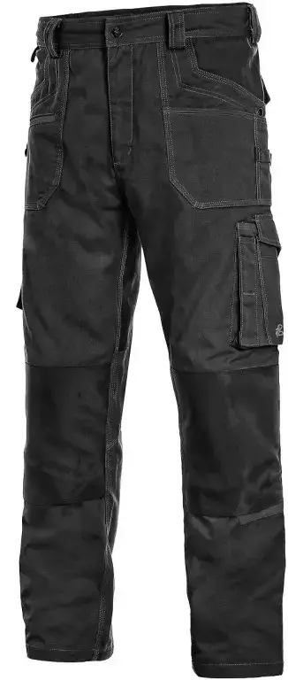 Housut sisältävät useita käytännöllisiä taskuja: vetoketjullinen lisätasku etutaskussa, monikäyttöiset sivutaskut molemmilla puolilla sekä kaksi takataskua, joista toinen on varustettu läpällä. Säilytysratkaisut helpottavat työkalujen ja tarvikkeiden järjestämistä.