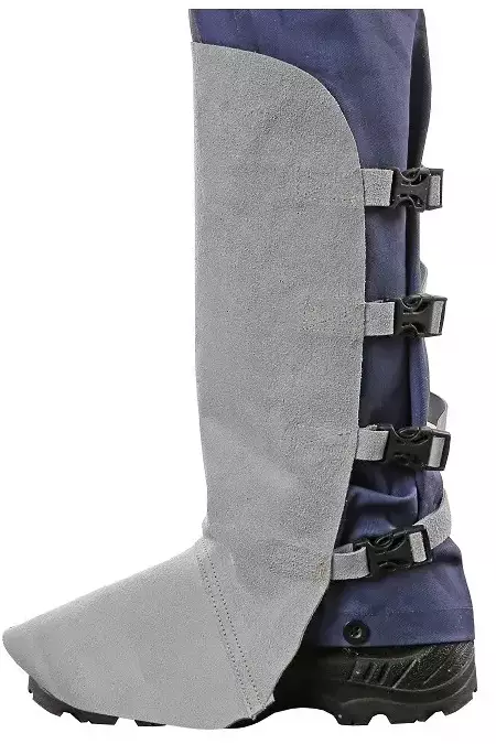 Hitsaussäärystimet, kiinnitys nahkaremmeillä ja muovisoljilla, pituus 48 cm EN ISO 11611 třída 2/A1 EN ISO 11611 class 2/A1 EN ISO 11611 klasa 2/A1 Myydään pareittain.