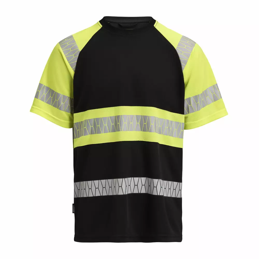 Tämä mukava ja toiminnallinen T-paita on valmistettu nopeasti kuivuvasta materiaalista, joka pitää ihon kuivana ja miellyttävänä koko päivän. Lämpöprässätyt heijastinnauhat Jobmanin designilla takaavat optimaalisen näkyvyyden hartioilla. T-paita on sertifioitu EN ISO 20471 -standardin luokan 1 mukaisesti.