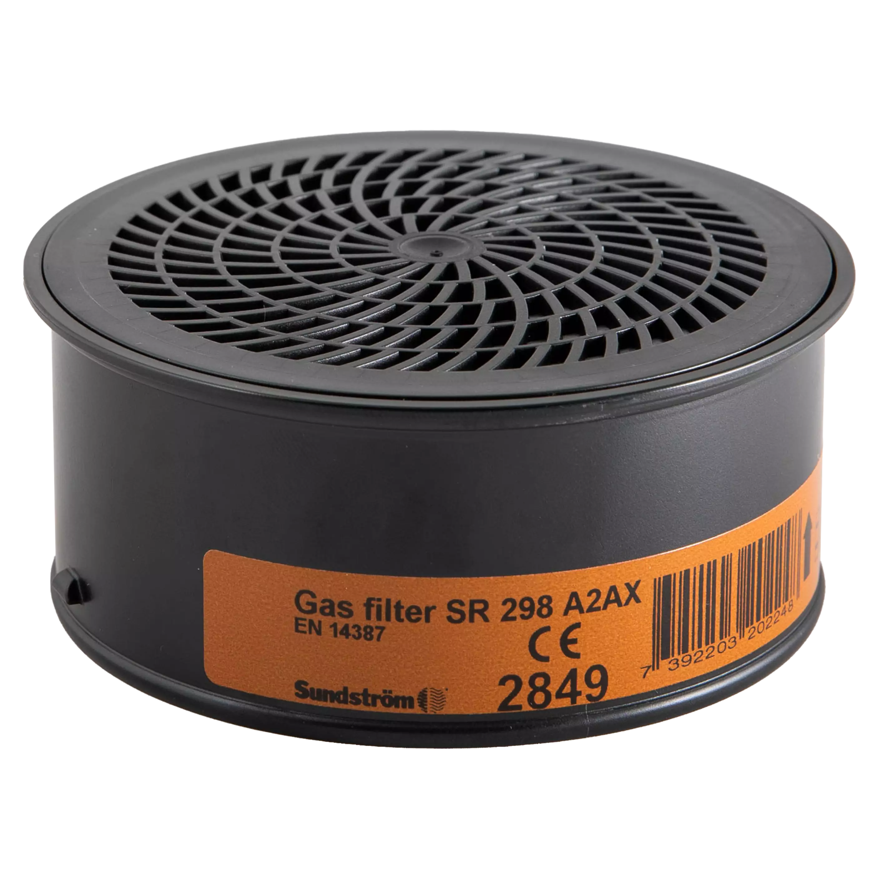 Tehokas kaasusuodatin Sundströmin puoli- ja kokonaamareihin. A2/AX-luokitus suojaa orgaanisilta kaasuilta ja höyryiltä – sekä yli 65 °C kiehuvilta liuottimilta (A2) että matalan kiehumispisteen yhdisteiltä (AX). Voit yhdistää suodattimen SR 510 P3 R -hiukkassuodattimeen, kun tarvitset myös aerosolisuojan (esim. ruiskumaalaus).