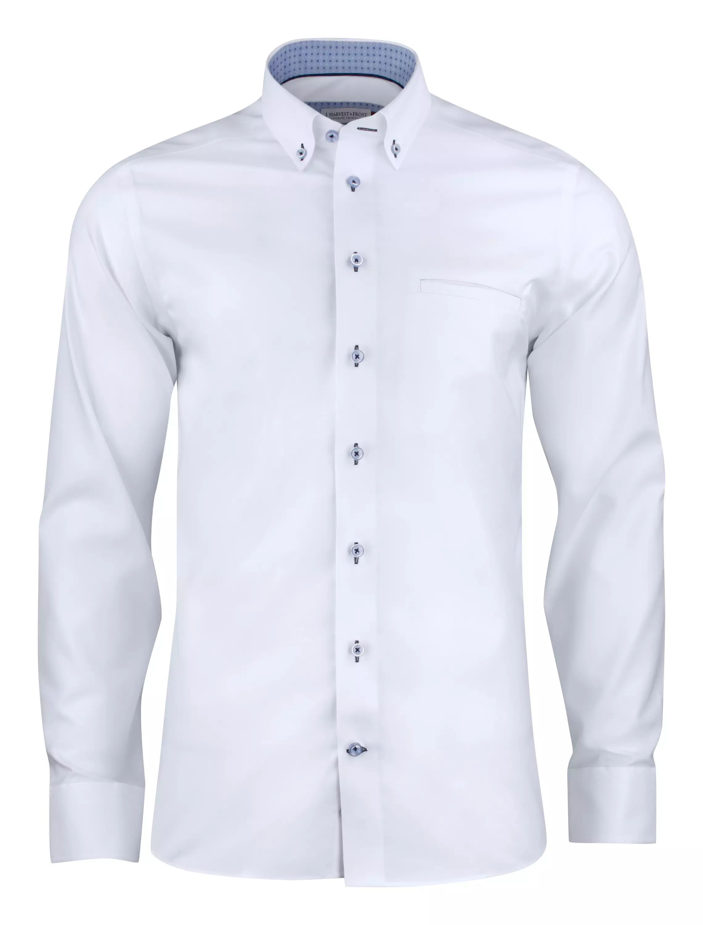 Materiaali:95 % pitkäkuituista puuvillaa, 5 % elastaania, 149 g/m². Oxfrod-kudonta ja konepestävä. Non Iron-patentoitu ja ympäristöystävällinen käsittely. Teipatut pääsaumat. 4 mm:n napit. Pyöreäreunaiset kalvosimet ja ylimääräiset kalvosinnapin reiät.