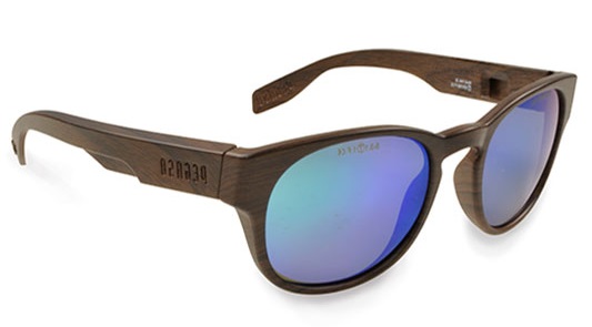 Pegaso Fever aurinkosuojalasit sini/vihreällä linssillä. Puunvärinen kehys ja pokat. Lasien mukana toimitetaan irroitettavat sivusuojat ja mikrokuitu pussi.