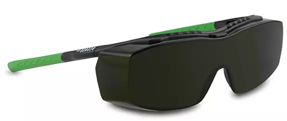 Suojalasit kaasuhitsaukseen. Mukautuvalla liittimellä varustetut sangat täydellisen istuvuuden takaamiseksi. Sen suunnittelun on erityisesti ajateltu mahdollistavan sen käytön kaikenkokoisissa korjaavien lasien kanssa.