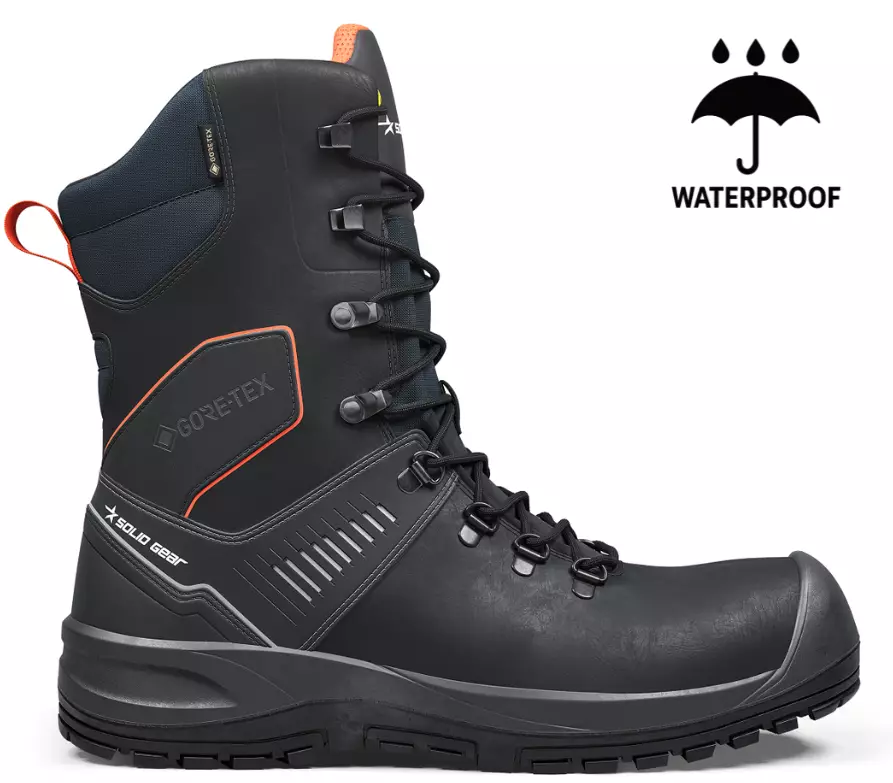 Turvajalkine Solid Gear Ion GTX High on suunniteltu olosuhteisiin, joissa lämpötila, kosteus ja tuuli vaihtelevat nopeasti. Gore Tex kalvo, lämmin vuori ja karkea kumipohja mahdollistavat työskentelyn vesisateessa, kovassa tuulessa ja lumipyryssä ilman että jalat kastuvat tai pito heikkenee liikaa.