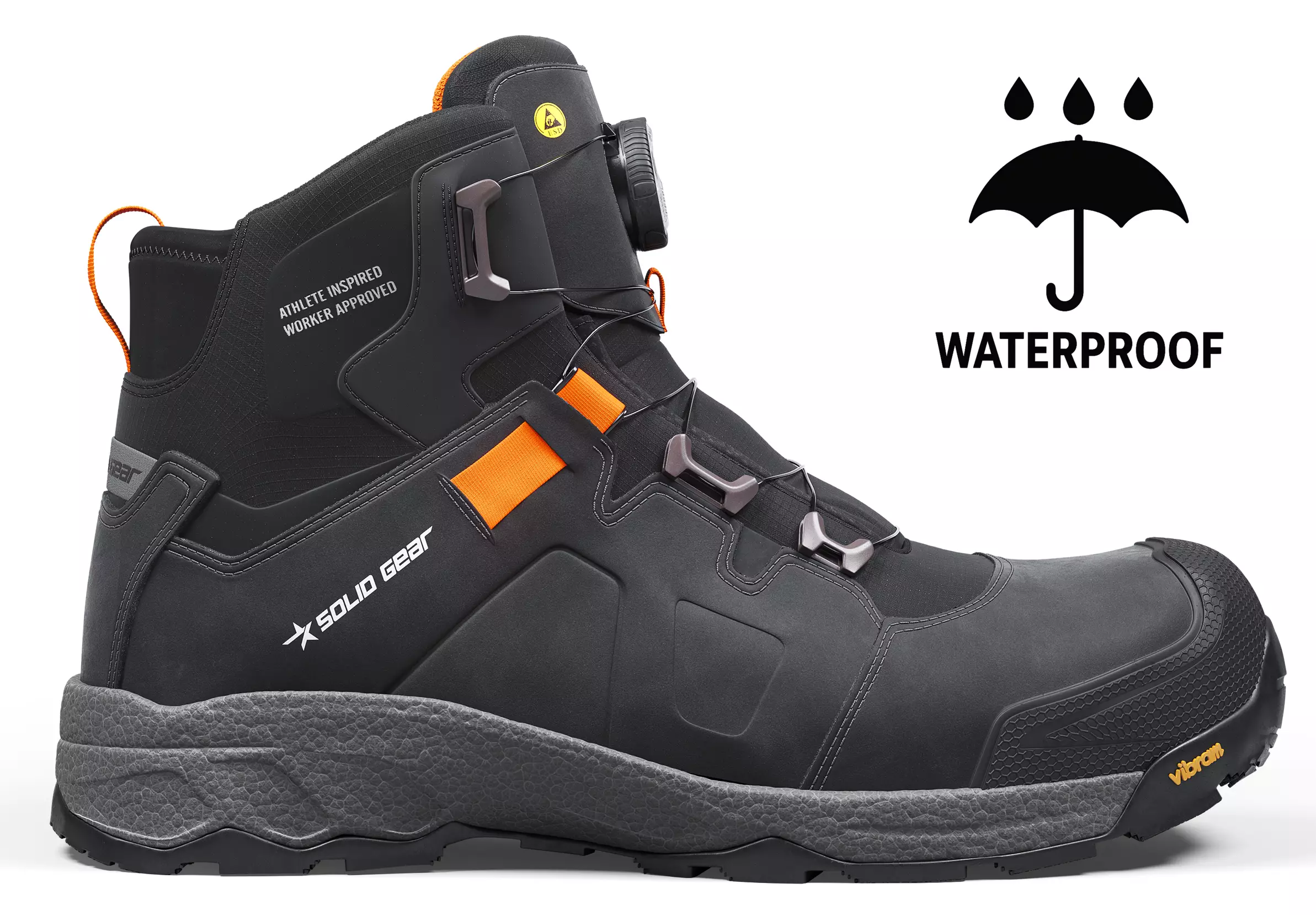 Solid Gear Vapor 3 Mid tarjoaa yhdistelmän vakautta, pitoa ja mukavuutta – ominaisuuksia, joita tarvitaan vaihtelevissa työoloissa, öljyisillä lattioilla, rakennustyömailla tai teollisuudessa. Vibram®-pohja pitää jalan tukevasti maassa, ETPU-välipohja vaimentaa askelia ja BOA®-järjestelmä tarjoaa tarkan istuvuuden ilman nauhojen löystymistä päivän aikana.