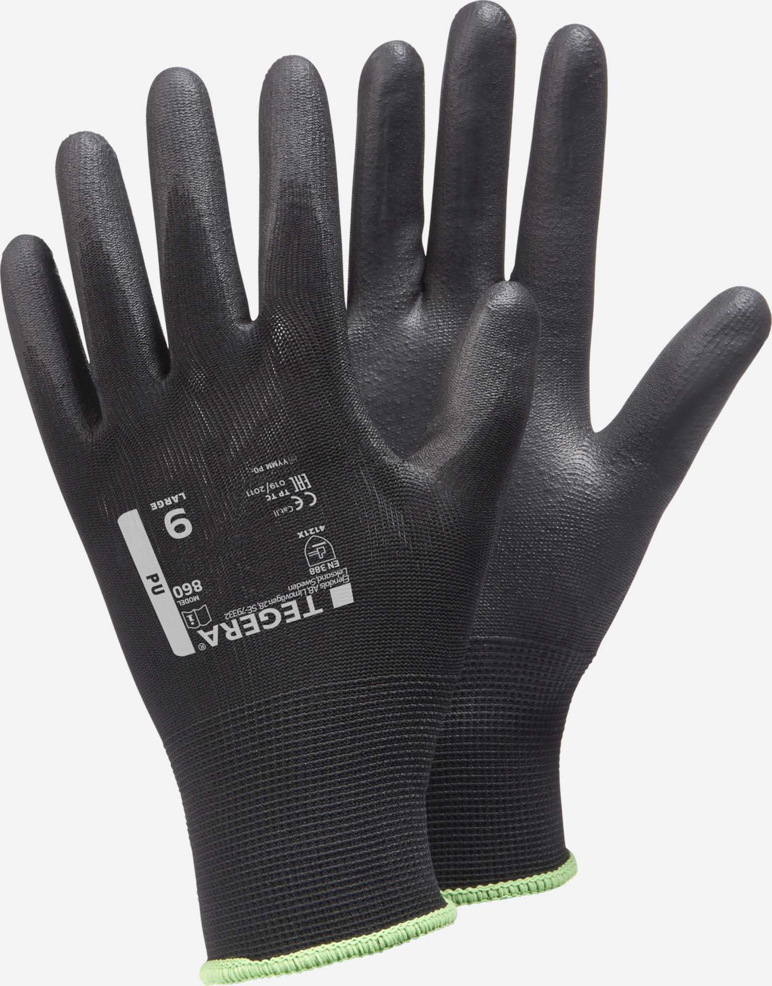 Synteettinen käsine, 0,7-0,8 mm PU, kämmenestä pinnoitettu, tasainen pinta, 13 gg, nailon, Cat. II, vettä ja öljyä hylkivä kämmenosa, tarkkuustyöt
