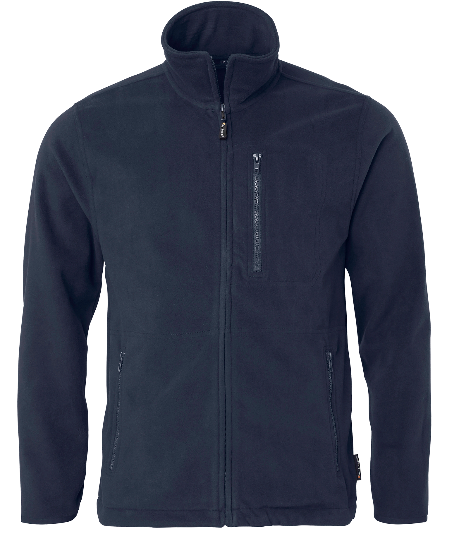 Fleecetakki, jossa on yksi rintatasku ja kaksi etutaskua, joissa on vetoketju. Helmassa säätönyöri.