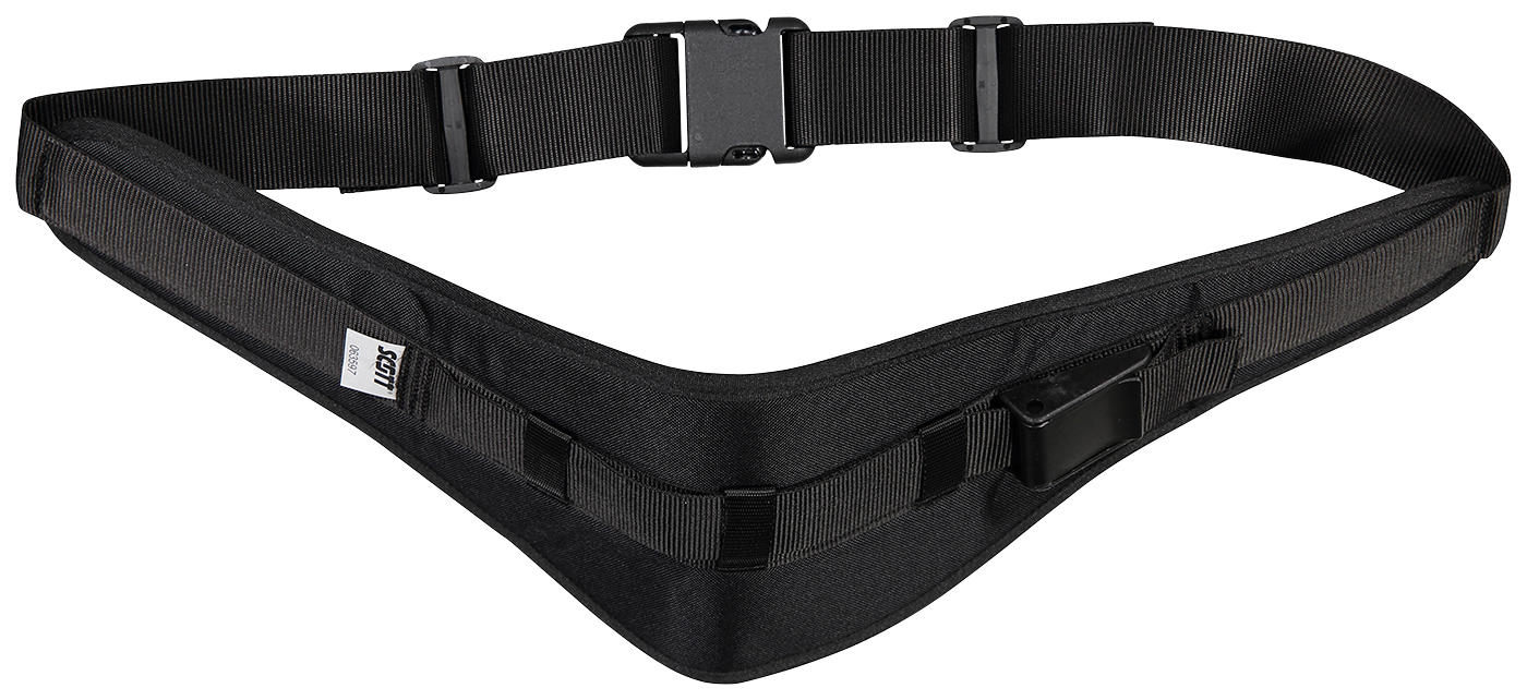 Leveä tukivyö keventää laitteiston kantamista. 100% polyesteri. 5 mm pehmuste polyeteenivaahtoa.