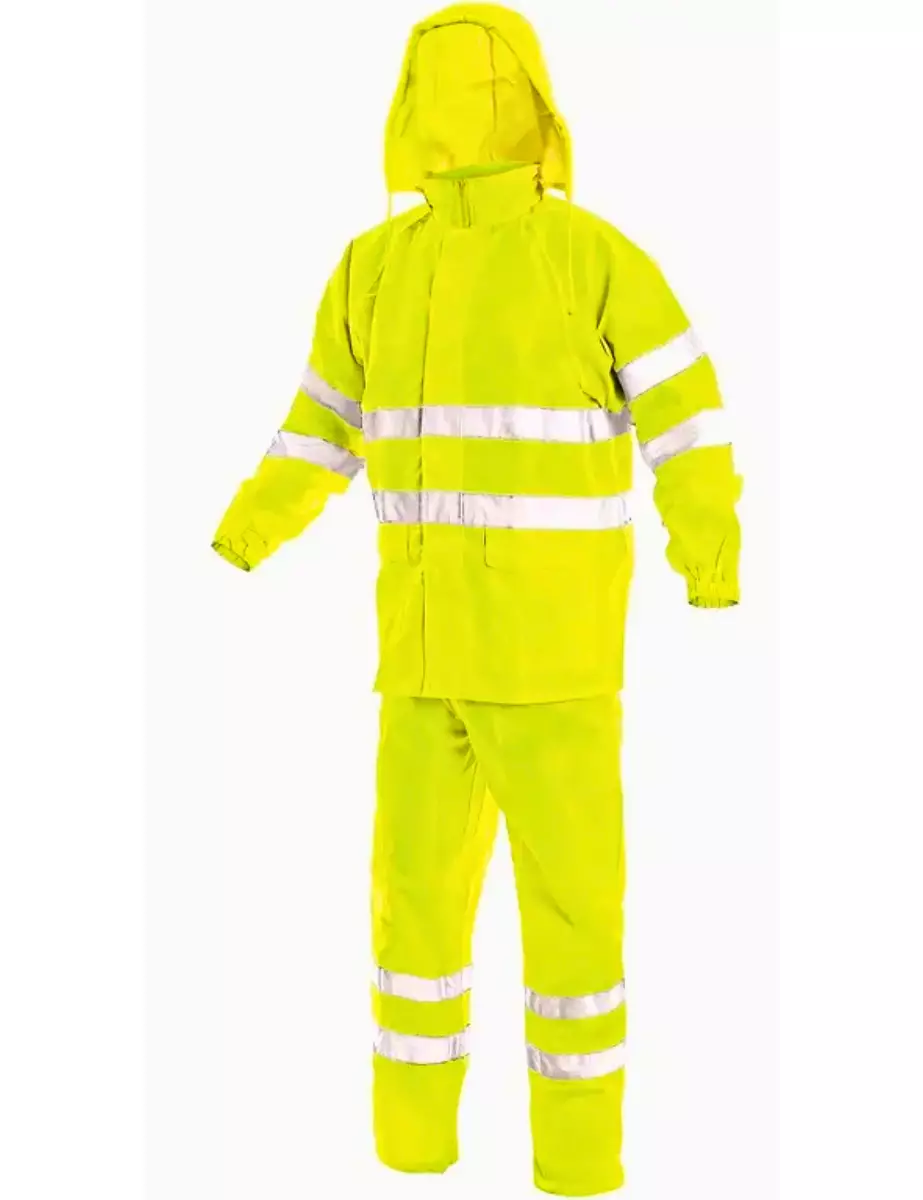 - TUOTETYYPPI: Huomiovärinen sadeasu, sadetakki ja sadehousu