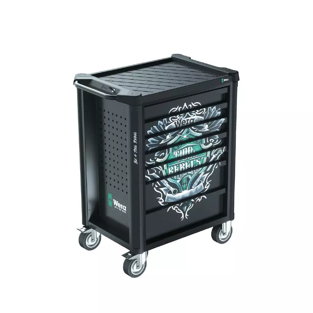 WERA 9700 Tool Rebel -työkaluvaunu tarjoaa ammattilaisille huippuluokan ratkaisun työkalujen säilytykseen ja kuljettamiseen. Tämä tyylikäs ja kestävä työkaluvaunu on varustettu 78 laadukkaalla WERA-työkalulla, jotka ovat valmiina vaativimpiinkin tehtäviin.